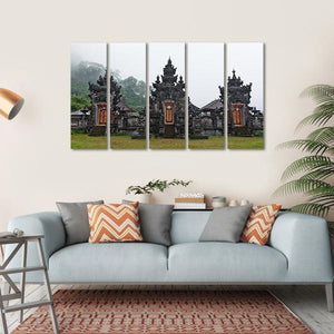 This canvas art captures the serene beauty of the Pura Ulun Danu Buyan Temple, set against a mystical, foggy backdrop. Intricate stone carvings and tiered roofs add to its architectural charm, making it a perfect piece for those who appreciate traditional religious art.