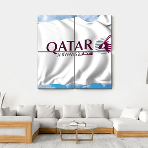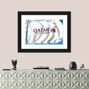 This canvas art features the Qatar Airways logo prominently displayed on a white flag, set against a clear sky. With a modern and clean design, it adds a sophisticated touch to any space.