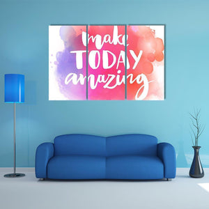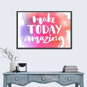 This inspiring canvas art features the uplifting quote, 'Make Today Amazing', set against a vibrant brush stroke background. In a palette of pink, purple, and orange, it adds a positive touch to your space.
