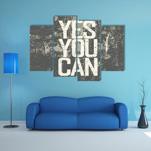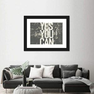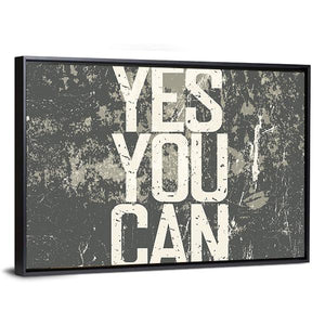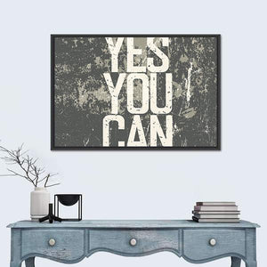 This canvas wall art features the motivational quote 'Yes You Can' in a bold, centered design. The gray and white palette, paired with a weathered texture, brings an industrial and grunge vibe to your space.