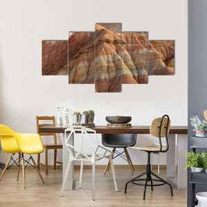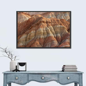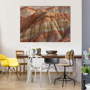This canvas art features a stunning view of multicolored hills and eroded landscapes, showcasing layered rock formations. Its dramatic and textured appearance brings an earthy vibe to any space, making it ideal for nature lovers.