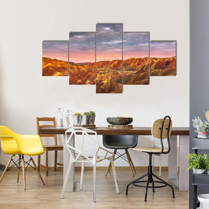 This canvas features the breathtaking Rainbow Mountains of Zhangye, a stunning natural landscape bathed in vibrant hues of orange, red, and yellow. With its dramatic composition and awe-inspiring sky at sunset, this piece is perfect for bringing a touch of nature's beauty into your decor.