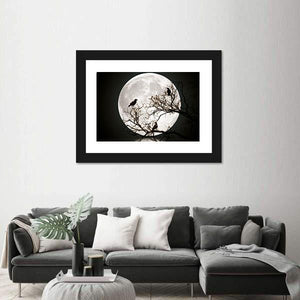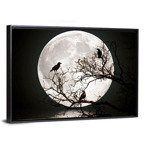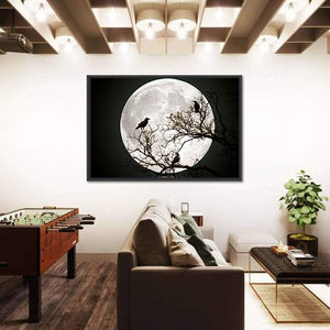 This captivating canvas art features ravens perched on bare tree branches beneath a full moon. With its dramatic black and white palette, it evokes a mysterious and serene atmosphere, perfect for nature lovers seeking a unique touch for their wall decor.
