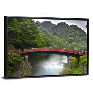 Red Sacred Bridge Shinkyo in Nikko Canvas Wall Art