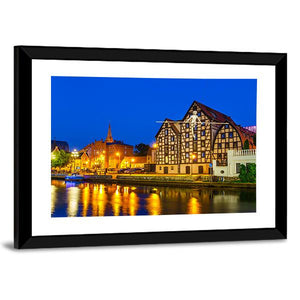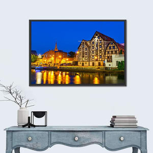 This beautiful canvas captures the serene River Brda at night, showcasing the charming riverfront buildings and illuminated reflections on the water. The warm palette of blue, yellow, and brown creates a peaceful and vibrant atmosphere, perfect for enhancing any living space.