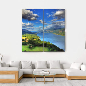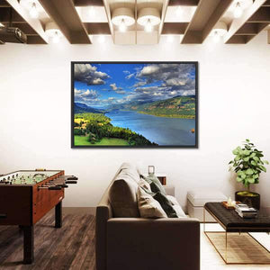 Capture the serene beauty of a river gorge with this stunning canvas wall art. Featuring majestic mountains, lush forests, and soft clouds, this vibrant artwork is perfect for bringing a touch of nature into your home.