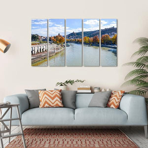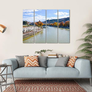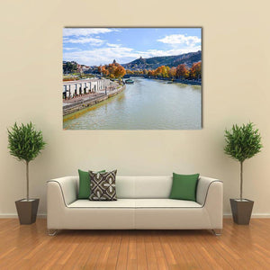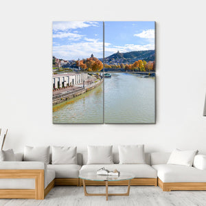 Capture the serene beauty of Tbilisi with this landscape canvas art. Featuring a tranquil river bordered by autumnal trees and charming buildings, this piece brings a calming vibe to any space.