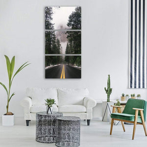 Road Through Foggy Winter Forest Vertical Canvas Wall Art