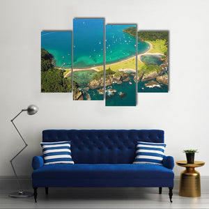 Capture the serene beauty of Roberton Island with this stunning canvas wall art. Featuring an aerial view of a tranquil bay filled with sailboats and surrounded by lush green islands, this piece brings a scenic touch to your space.