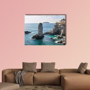 Capture the serene beauty of Jeju Island with this canvas wall art, featuring striking rock formations and a vast ocean view. The photorealistic style brings to life the jagged cliffs and distant island, creating a calming atmosphere that fits beautifully in any natural-themed décor.