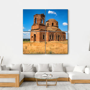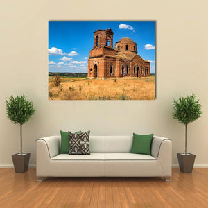 This canvas artwork captures the haunting beauty of an abandoned Orthodox cathedral set against a desolate field and sky. With rustic tones of brown, green, and blue, it brings a sense of nostalgia and contemplation to your space.