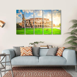 This canvas art features the majestic ruins of the Colosseum set against a serene green field. The historical atmosphere and realistic details invite a sense of wonder, making it a captivating addition to your décor.