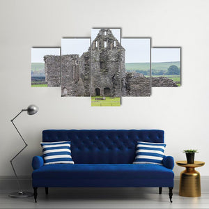 This canvas art features the historic ruins of Glenluce Abbey set against an open grass field and an overcast sky. The rustic palette of gray, green, white, and blue complements the desolate atmosphere, making it a thoughtful addition to any space.