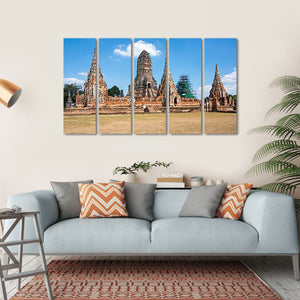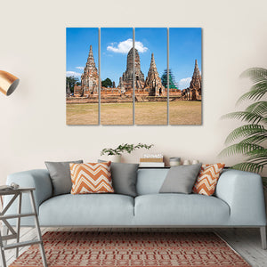 This canvas wall art features the serene temple ruins and pagodas of Ayutthaya, Thailand, set against a striking blue sky. The photorealistic rendering captures the historic beauty and peaceful mood of this iconic location, making it a captivating addition to any art collection.