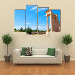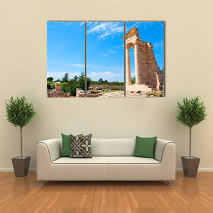 This captivating canvas art features the ancient ruins of the Sanctuary of Apollo Hylates, framed against a serene blue sky with fluffy white clouds. The realistic portrayal invites a sense of history and tranquility to your space.