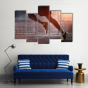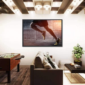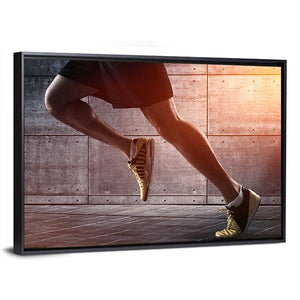 Celebrate the spirit of movement with this dynamic artwork featuring a runner's legs in a vibrant action shot. The warm palette of browns, grays, yellows, and oranges creates an energetic atmosphere that’s perfect for any fitness or modern decor.