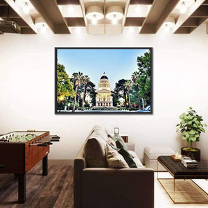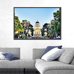 This canvas art features the majestic Sacramento State Capitol Building, surrounded by palm trees and a clear sky. The serene and stately vibe makes it a perfect addition to any room.