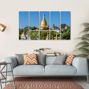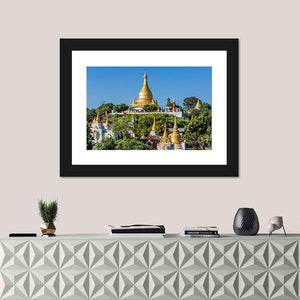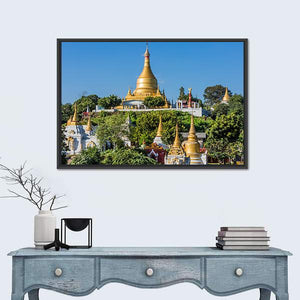 This canvas wall art beautifully captures the serene landscape of Sagaing, Myanmar, showcasing golden pagodas and temples beneath a clear blue sky. The photorealistic style and majestic details invite a sense of calm and spirituality into any space.