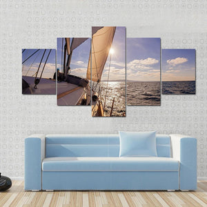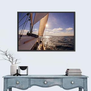 This canvas wall art features a stunning sailboat gliding across the serene ocean, framed by a bright sky. The photorealistic details invite a sense of adventure and tranquility into any space.
