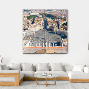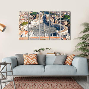 Capture the grandeur of St. Peter's Square in Vatican City with this canvas wall art. Featuring an aerial perspective of iconic architecture and statues, the piece evokes a sense of history and expansiveness, making it a striking addition to any space.