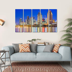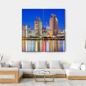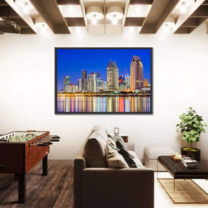 Capture the vibrant energy of San Diego with this stunning canvas art featuring a lively city skyline at night. Bright reflections in the water add a festive touch to your wall decor, making it a perfect fit for modern spaces.