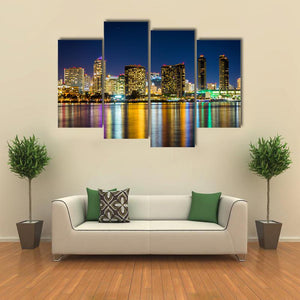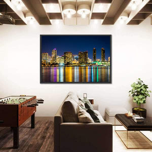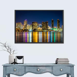Experience the vibrant San Diego skyline with this stunning canvas wall art. Featuring colorful reflections of tall buildings and glowing windows against the backdrop of a nighttime sky, this piece captures the essence of urban life. It's an ideal addition to any modern décor.