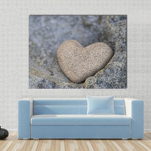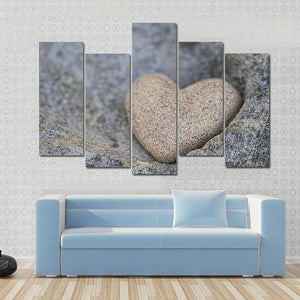 This canvas art features a heart-shaped stone surrounded by natural rocks, inviting a serene and peaceful atmosphere. With its gray, tan, and beige tones, it complements various décor styles beautifully.