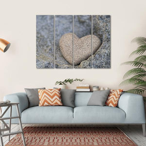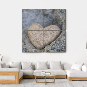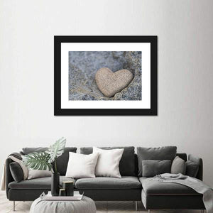 This canvas art beautifully captures a heart-shaped stone amidst a backdrop of pebbled textures, evoking a calm and serene atmosphere. The earthy palette of gray, tan, and brown adds a thoughtful touch, making it an ideal addition to any nature-inspired decor.
