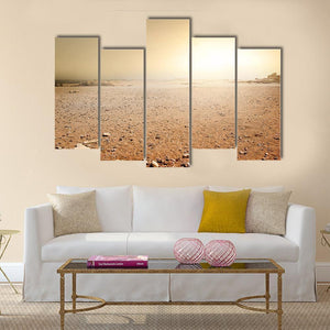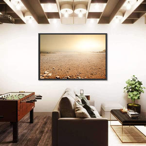 This canvas wall art captures a serene desert landscape illuminated by sunset. The warm tan and brown hues evoke a bright yet desolate mood, making it a striking addition to any modern decor.