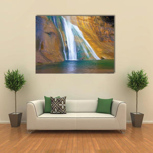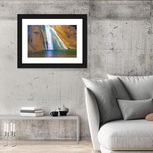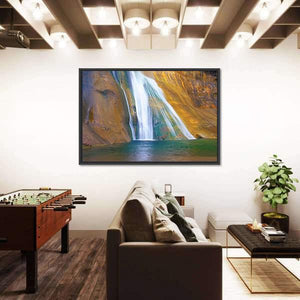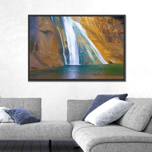 This canvas art beautifully captures the serene beauty of Lower Calf Creek Falls, featuring cascading water and vibrant rock formations. Its naturalistic style brings a tranquil, majestic feel to any space.