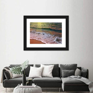 Capture the serene beauty of the ocean with this canvas wall art featuring a peaceful beach at sunset. The vibrant palette of green, blue, and orange reflects sunlight dancing on the waves, creating a tranquil atmosphere perfect for any space.