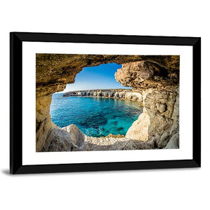 This captivating canvas art features an ocean cave near Ayia Napa, Cyprus, showcasing turquoise waters and breathtaking coastal cliffs. With a serene and adventurous vibe, it beautifully captures visibility into the depths below, revealing divers in clear water.
