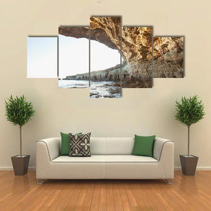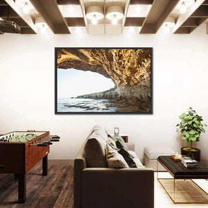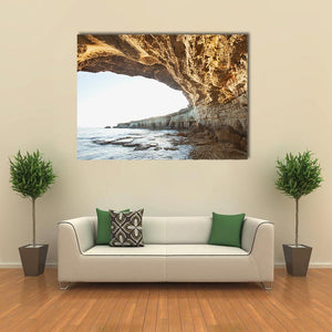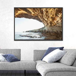 This canvas artwork captures a serene landscape of sea caves along the rocky coastline in Cyprus. With bright colors and sunlight filtering through the cave opening, it brings a natural and calming vibe to your space.