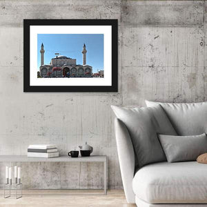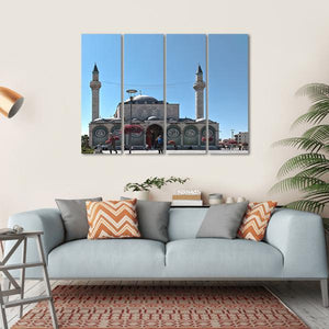 This canvas wall art showcases the Selimiye Mosque, capturing its majestic dome and elegant minarets. The serene atmosphere is enhanced by intricate architectural details and vibrant flower displays, making it a beautiful addition to any space.