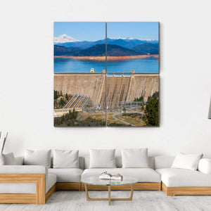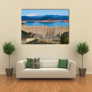 This canvas art captures the grand beauty of Shasta Dam set against majestic snow-capped mountains. With its realistic portrayal and a palette of blues and greens, it evokes a powerful atmosphere that enhances any landscape-themed décor.