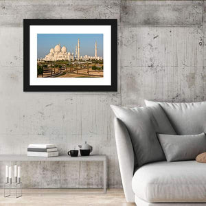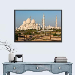 This canvas art captures the magnificent Sheikh Zayed Mosque in Abu Dhabi, showcasing its stunning architecture amidst lush gardens and palm trees. The serene and peaceful vibe makes it a perfect addition to any space seeking elegance and tranquility.