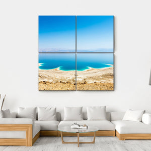This canvas wall art captures the breathtaking salt formations and tranquil mountains of the Dead Sea. With its serene tones of blue, brown, and gold, it evokes the vastness and beauty of this unique landscape.