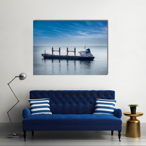 This beautiful canvas features a cargo ship sailing through a serene ocean under a partially cloudy sky. The calm palette of blues, whites, and grays creates a distant, peaceful atmosphere, making it a perfect addition to any modern décor.