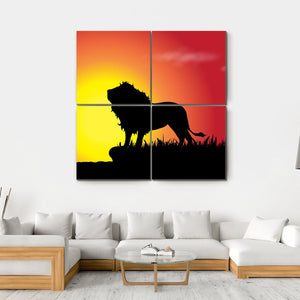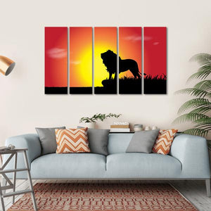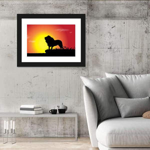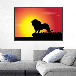 This striking wall art features a majestic lion silhouette against a vibrant sunset. With its serene black and orange palette, it captures a powerful moment in nature, making it a fitting addition to any modern décor.