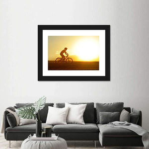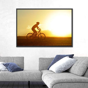 Cyclist Silhouette at Sunset Canvas Wall Art
