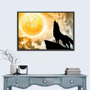 This striking canvas features a wolf howling at a glowing moon, surrounded by wispy clouds and a rocky cliff. With its mysterious and wild atmosphere, it evokes a sense of serenity that’s perfect for adding character to your living space.