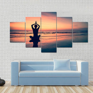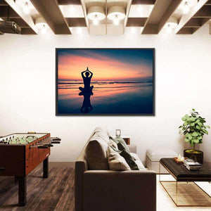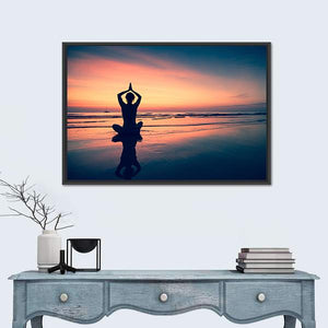 Silhouette of Woman Practicing Yoga at the Seaside Canvas Wall Art