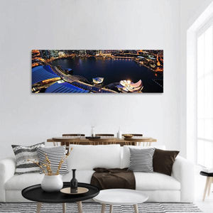 Singapore Cityscape At Night Panoramic Canvas Wall Art