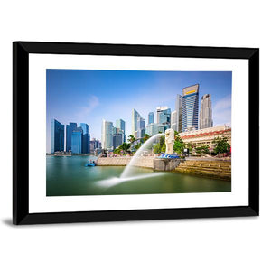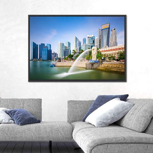 This canvas art captures the vibrant skyline of Singapore, featuring the iconic Merlion fountain and surrounding skyscrapers. The dynamic blend of blue, green, and gray hues offers a refreshing view of Marina Bay, making it an eye-catching piece for any cityscape lover.