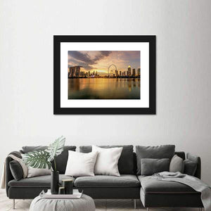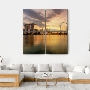This photorealistic canvas captures the majestic skyline of Singapore’s business district, showcasing tall buildings against a vibrant sunset. The serene color palette of gold, orange, brown, and grey elegantly reflects in the water, bringing a touch of tranquility to your décor.