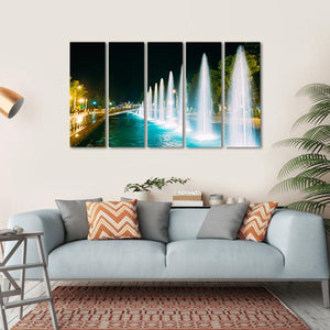 This captivating canvas art features the vibrant dancing fountains of Batumi, Georgia, set against a serene nightscape. The glowing lights and tree silhouettes evoke a magical atmosphere, making it an ideal piece for adding energy to your home decor.