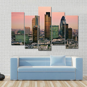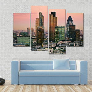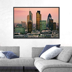 This canvas features a vibrant cityscape of London's skyline, showcasing modern architecture and tall skyscrapers. With its eye-level perspective and bustling urban mood, it's an inviting addition to any contemporary home decor.