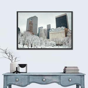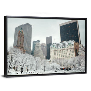 Snowy Manhattan Skyline in Winter Canvas Wall Art