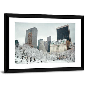 Experience the urban charm of Midtown Manhattan with this stunning canvas art featuring a picturesque snowy park. The vibrant palette and photorealistic style capture the beauty of winter in the city, making it a captivating addition to any space.