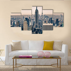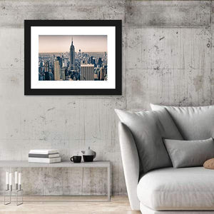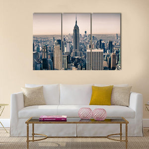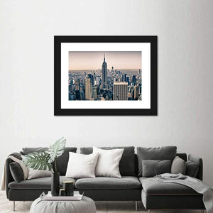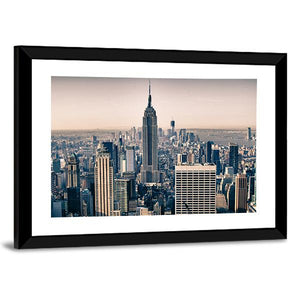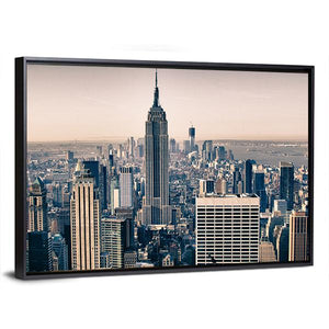This stunning canvas print features the iconic Empire State Building and the expansive Manhattan skyline, captured from an aerial perspective. With a modern, photorealistic style, it brings an urban atmosphere that complements any room.